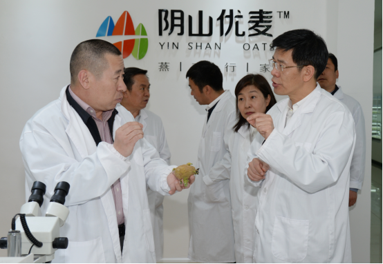 民豐種業(yè)董事長盧文兵對公司近年來的發(fā)展情況以及企業(yè)三產(chǎn)融合的實施布局情況向黃志強副主席進行了詳細的匯報。近幾年,民豐種業(yè)已發(fā)展成為中國集馬鈴薯、燕麥研發(fā)、種子生產(chǎn)、分級加工、物流倉儲、推廣銷售于一體的現(xiàn)代化農(nóng)業(yè)企業(yè),是農(nóng)業(yè)產(chǎn)業(yè)化國家重點龍頭企業(yè)、國家高新技術(shù)企業(yè)、自治區(qū)扶貧龍頭企業(yè)。子公司陰山優(yōu)麥已發(fā)展成為中國燕麥深加工企業(yè),是自治區(qū)農(nóng)業(yè)產(chǎn)業(yè)化重點龍頭企業(yè)和自治區(qū)扶貧龍頭企業(yè),所生產(chǎn)的燕麥米、燕麥片、燕麥餐杯、燕麥高纖素等燕麥?zhǔn)称蜂N往全國二十多個省市,成為百姓餐桌上的大健康食品。子公司蒙薯食品“年產(chǎn)8000噸低溫油炸薯條、2000噸胡蘿卜脆片加工項目”也將于今年投產(chǎn)。