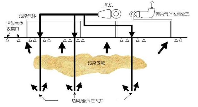 1、物理修復技術。物理修復主要針對有機污染物,修復技術包括蒸汽浸提、熱脫附、微波加熱等,目前已有苯系物、多環(huán)芳烴、多氯聯苯以及二噁英等的土壤修復的工程應用。蒸汽浸提技術可以進行原位或異位修復,是通過降低土壤孔隙的蒸汽壓,將土壤中的污染物以蒸汽形式去除。適用于高揮發(fā)性化學污染土壤的修復,如汽油、苯和四氯乙烯等。具有可操作性強,設備簡單,容易安裝,對土壤結構破壞小,處理周期6~24個月。但只能處理不飽和的土壤,對飽和土壤和地下水的處理還需要其他技術。熱脫附修復技術指利用高溫所產生的一些物理和化學作用(揮發(fā)、燃燒、熱解)去除或破壞土壤中有毒物質的過程。一般用于處理有機污染的土壤(VOCs、SVOCs、農藥等)及部分重金屬污染的土壤(如揮發(fā)性金屬汞),具有快速、治理效果好、適用范圍廣等特點。但熱處理技術成本較高,相關設備及修復過程需要大量的人力物力與時間,一定程度上限制了該技術的推廣應用。