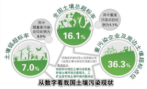 一、土壤污染現狀。2005年4月-2013年12月,環(huán)保部與國土資源部首次開展了全國土壤污染狀況調查,根據2014年《全國土壤污染狀況調查公報》調查結果顯示,我國當前的土壤污染超標率達到16.1%,并且耕地污染超標率達到19.4%,林地及草地的污染超標率高于10.0% 以上。2016年5月28日,國務院印發(fā)了《土壤污染防治行動計劃》,簡稱"土十條"。"土十條"的發(fā)布被認為是土壤修復事業(yè)的里程碑事件。隨著"土十條"的發(fā)布,國家陸續(xù)出臺了一系列法律法規(guī)及政策文件,如:《污染地塊土壤環(huán)境管理辦法(試行)》(2017年7月1日施行)、《農用地土壤環(huán)境管理辦法(試行)》(2017年11月1日施行)、《工礦用地土壤環(huán)境管理辦法(試行)》(2017年12月17日完成第一次征求意見)等等。這預示著土壤污染同大氣污染及水污染的防治同樣重要,土壤污染修復工作的開展,將減緩當前土壤環(huán)境惡化的加劇,為推進生態(tài)文明建設,加快建設美麗中國添磚加瓦。