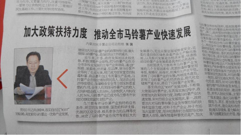 張國表示,民豐薯業(yè)將堅定貫徹總書記講話精神,落實自治區(qū)“8337”發(fā)展戰(zhàn)略,充分發(fā)揮龍頭企業(yè)帶動、幫扶作用,為推動我市馬鈴薯產(chǎn)業(yè)快速發(fā)展做出新貢獻。