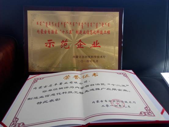 2014年11月21日,信息中心參加了內(nèi)蒙古自治區(qū)“十二五”制造業(yè)信息化科技工程推進(jìn)會,會上,烏蘭察布市科技局宣布并為我公司頒發(fā)了由內(nèi)蒙古科技廳評選的“內(nèi)蒙古自治區(qū)“十二五”制造業(yè)信息化科技工程示范企業(yè)”牌匾和“制造業(yè)信息化科技工程先進(jìn)推廣應(yīng)用企業(yè)”榮譽證書。 此 次為第二批自治區(qū)“十二五”制造業(yè)信息化科技工程示范企業(yè)和全區(qū)制造業(yè)信息化科技工程先進(jìn)推廣應(yīng)用的評選,經(jīng)各盟市和包頭稀土高新區(qū)科技管理部門推薦、專 家網(wǎng)評打分和專家討論評審,全區(qū)共272家被評選上榜,其中烏蘭察布市示范企業(yè)和先進(jìn)推廣應(yīng)用企業(yè)共四家,我公司被評選上榜并榮獲表彰。 此次表彰及“制造業(yè)信息化科技工程示范企業(yè)”的揭牌,是對民豐薯業(yè)近年來信息工作所取得成果的充分肯定。同時,對于公司未來信息化發(fā)展必將起到極大的推動作用。