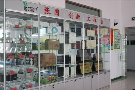 創(chuàng)新工作室建立在馬鈴薯研究院,以自治區(qū)勞動模范總經(jīng)理張國命名。工作室設(shè)立了成果展示柜,集中展示了工作室成立以來總經(jīng)理張國和我公司在馬鈴薯領(lǐng)域科研發(fā)展領(lǐng)域方面取得的創(chuàng)新成果和獲得的榮譽(yù)。工作室組織機(jī)構(gòu)、工作計(jì)劃、目標(biāo)、內(nèi)容、簡介、科研課題項(xiàng)目管理制度、管理辦法全部上墻,分別掛牌成立了實(shí)驗(yàn)準(zhǔn)備室、病理鑒定室、理化分析室、育種資源室和脫毒培養(yǎng)室。